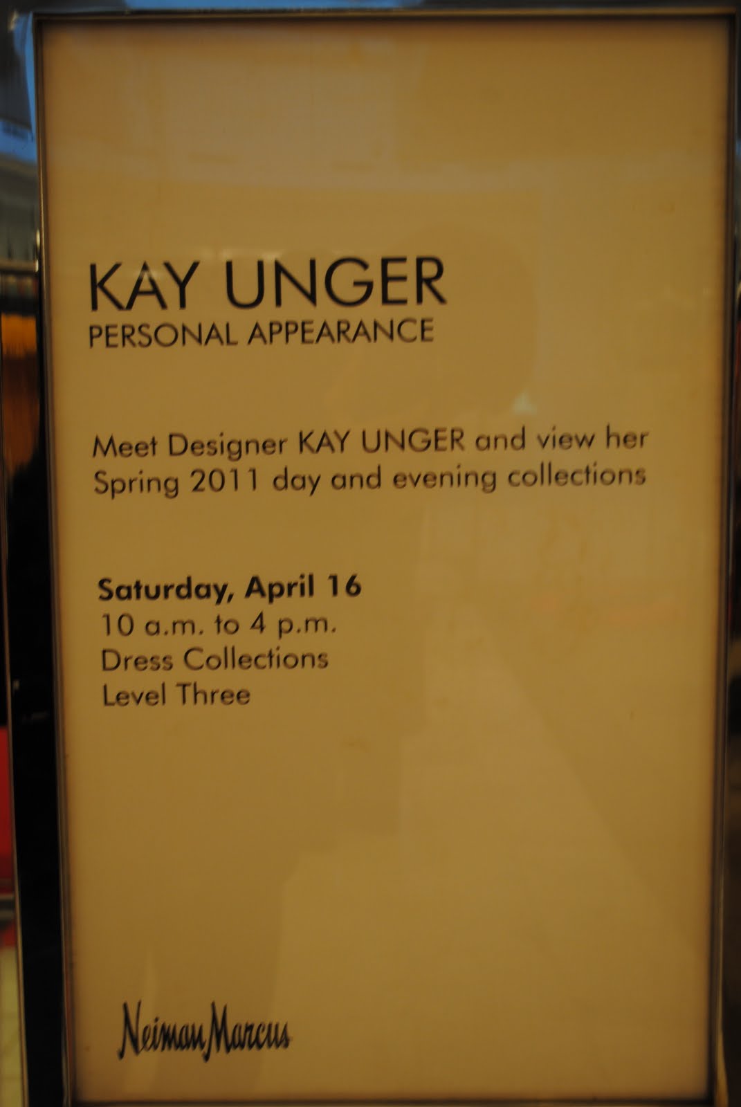 I have meant Kay Unger three times now. Each time is a wonderful experience. Her dresses are simply stunning and fit all of her faithful customers very well! During this appearance I met a couple who could be arguably Kay's most faithful! The woman has been wearing Kay Unger pieces for the ten years she has been married.